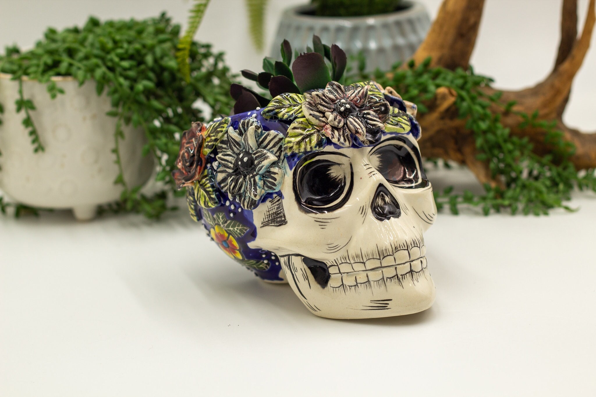 Authentic Hand Painted Talavera Sugar Skull Day Of The Dead Calavera Planter Pot 26097 Gallery Ethnica Tres Gatos