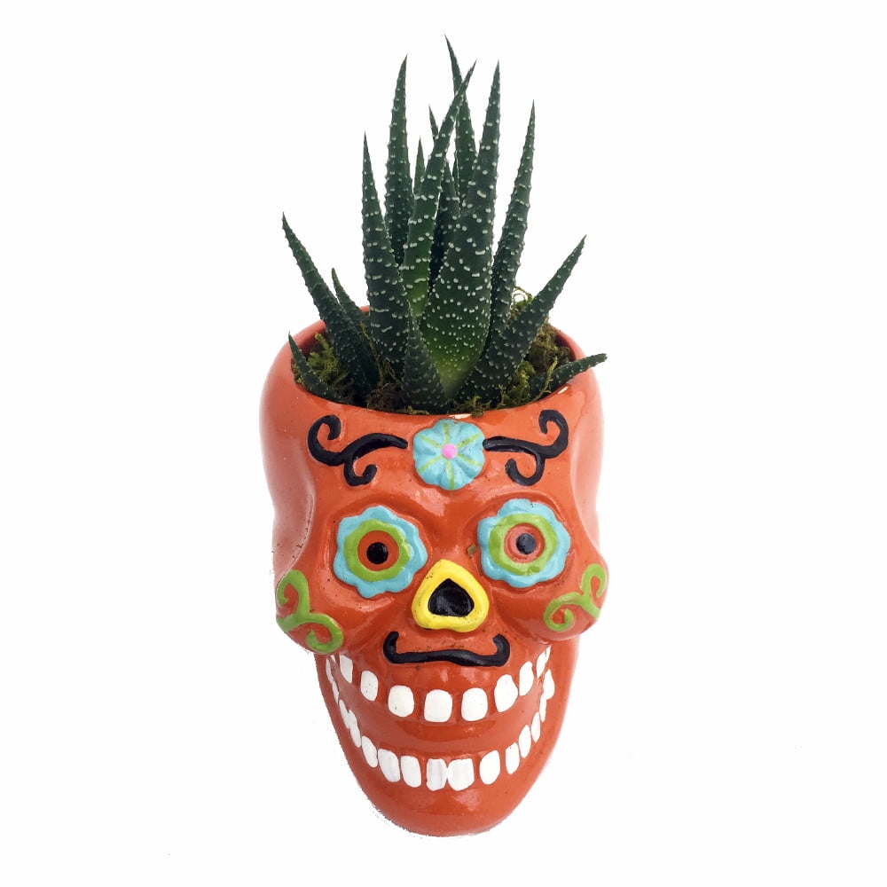 Orange Sugar Skull Ceramic Planter With Live Plant 4 3 X 5 In Live Trends Walmart Com